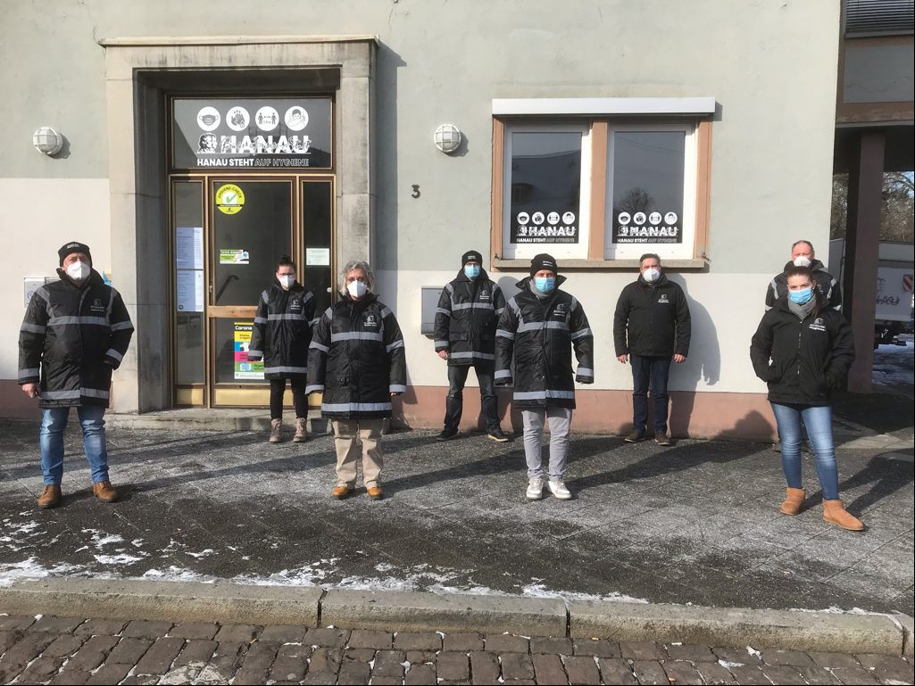 Zum Hygieneteam der Stadt Hanau gehören sieben städtische Mitarbeiterinnen und Mitarbeiter, die gemeinsam mit 20 zusätzlichen Securitykräften die Ordnungspolizei der Stadt unterstützen. In „gemischten Streifen“ sind sie von 11 bis in kleinen Einheiten in der Stadt unterwegs und achten auf die Einhaltung der Hygieneregeln auf der Straße und in den Betrieben.